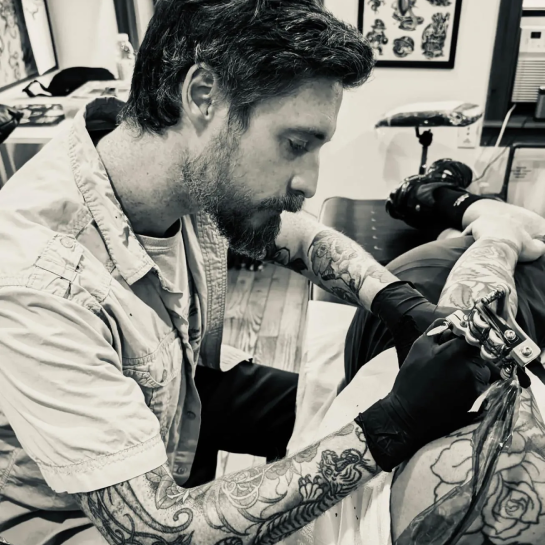 Dave began his career as a comic book illustrator, a foundation that led him into tattooing. His love of movies, comic books, sci-fi, and fantasy shines through in his work, while his range spans from American Traditional to fine line and everything in between. Drawing on his background in illustration and graphic design, Dave creates custom tattoos that are not only technically strong but also tailored to each client’s individual style.